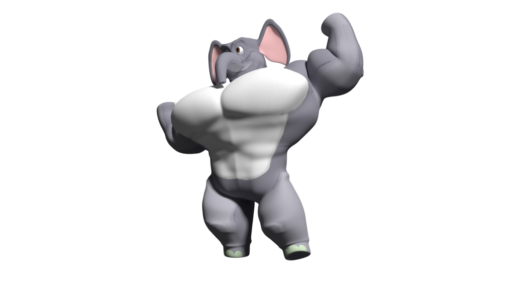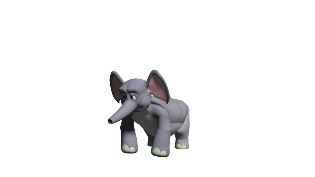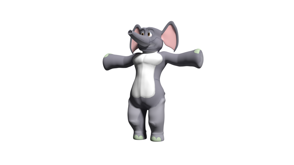 A Heffalump 3d model made in blender. This one has nub hands and feet. He is pretty flexible, though note, works best in 2.79 version of blender as that includes the pose library. Never fear, if you use a newer version, I've key framed his body shapes to the blend file. .Fbx included