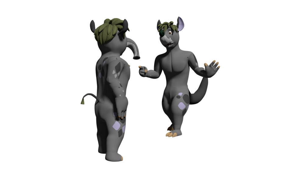 A thin Heffalump 3d model made in blender. This one has hands and feet, and thin ears. He is pretty flexible, though note, works best in 2.79 version of blender as that includes the pose library. Never fear, if you use a newer version, I've key framed his body shapes to the blend file and included a clean file with just the model. .Fbx included